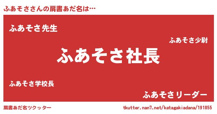 | 意味不明あだ名 | 『ペロリンふあそさ』『永久保存ふあそさ』 |