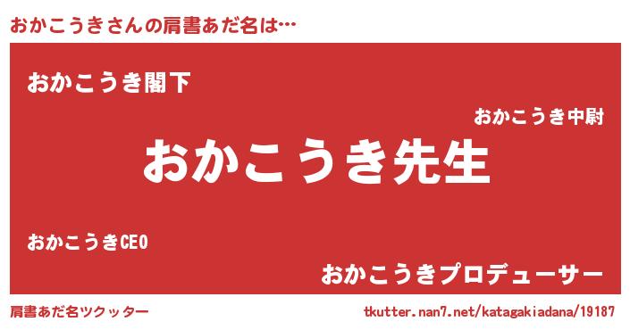 | ヒーロー風カッコイイあだ名 | 『ネオオカコウキ』『スーパーオカコウキ』 |