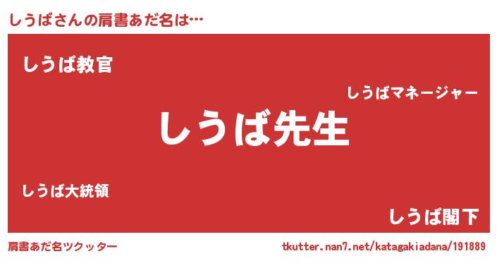 | 男性向けラノベタイトル風あだ名 | 『しうばという概念が存在しない退屈な世界 』 |