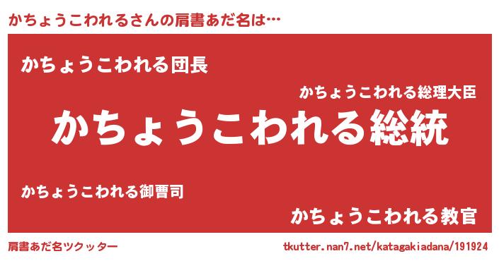 | 意味不明あだ名 | 『自称かちょうこわれる』 |