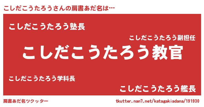 | 男性向けラノベタイトル風あだ名 | 『この素晴らしい世界にこしだこうたろうを!』 |