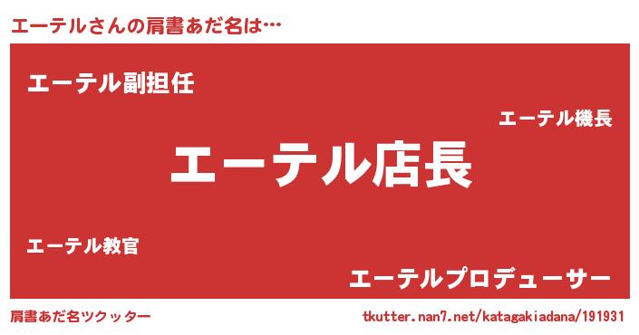 | 欧米人風あだ名 | 『マイケルエーテル』 |
