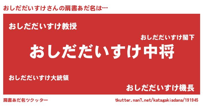 | 男性向けラノベタイトル風あだ名 | 『オシダダイスケスレイヤー』 |