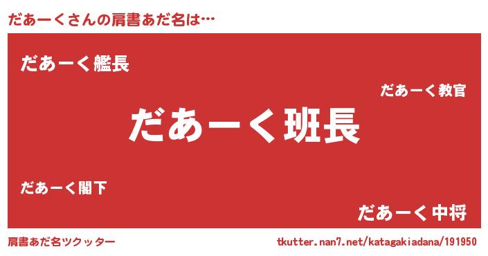 | 女子向けラノベタイトル風あだ名 | 『だあーくの卵を拾いまして』 |