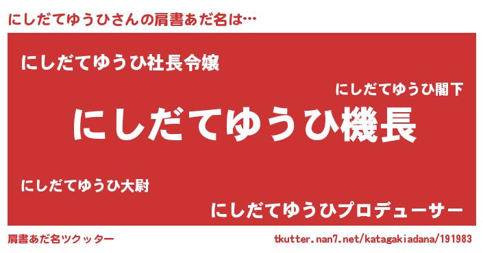 | 胡散臭い通販商品みたいなあだ名 | 『必ず成功する霊験あらたかなお札…その名も「にしだてゆうひ」』 |