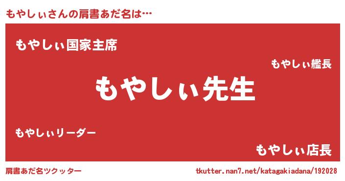 | 男性向けラノベタイトル風あだ名 | 『もやしぃという概念が存在しない退屈な世界 』 |