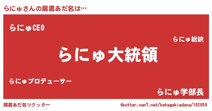 | 女子向けラノベタイトル風あだ名 | 『らにゅ伯爵の花嫁』『死神らにゅの再婚』 |