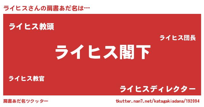 | 意味不明あだ名 | 『自称ライヒス』『永久保存ライヒス』 |
