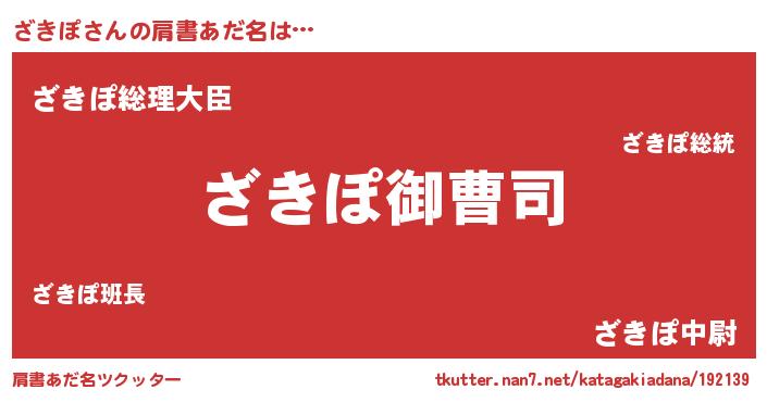 | 男性向けラノベタイトル風あだ名 | 『ざきぽの憂鬱』『魔法科高校のざきぽ』 |