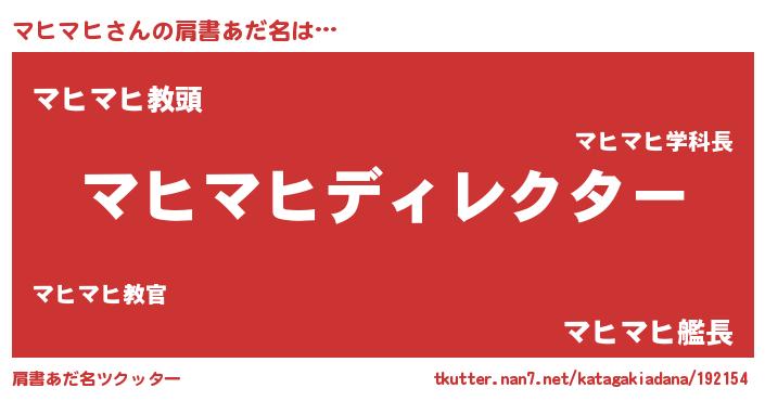 | ファンタジー風あだ名 | 『マヒディッシュ』『カークマヒラー』 |