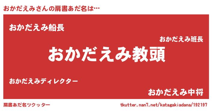 | 意味不明あだ名 | 『永久保存おかだえみ』『自称おかだえみ』 |