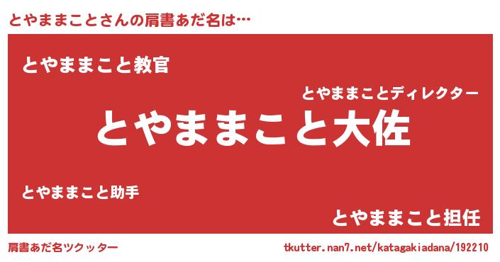 | ヒーロー風カッコイイあだ名 | 『仮面トヤダー』『ネオトヤママコト』 |