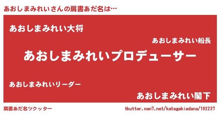 | 伝説のあだ名 | 『覚醒した遊び人あおしまみれい』 |