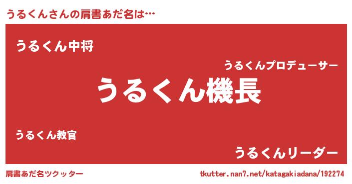 | 男性向けラノベタイトル風あだ名 | 『緋弾のウルクン』『魔弾の王とうるくん』 |