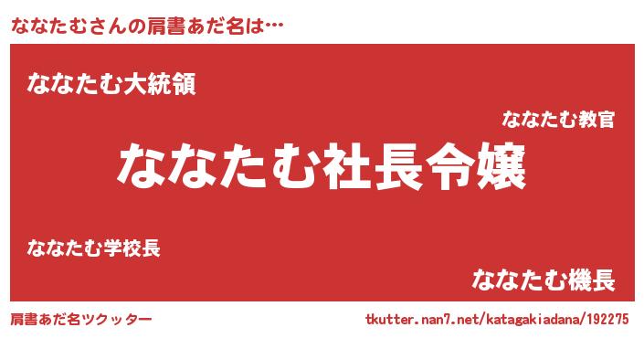 | ヒーロー風カッコイイあだ名 | 『スーパーナナタム』『仮面ナナダー』 |