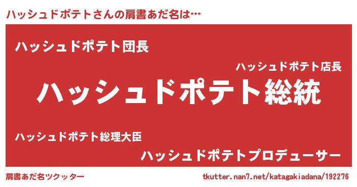 | 意味不明あだ名 | 『自称ハッシュドポテト』 |