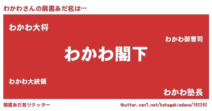 | 欧米人風あだ名 | 『ケンブリッジわかわ』『ウサインわかわ』 |