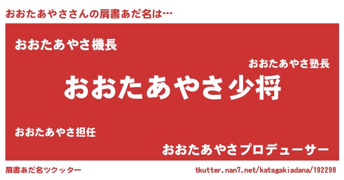 | ヒーロー風カッコイイあだ名 | 『暗黒騎士オオ』『ネオオオタアヤサ』 |