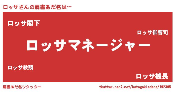 | 男性向けラノベタイトル風あだ名 | 『はたらくロッサさま!』 |