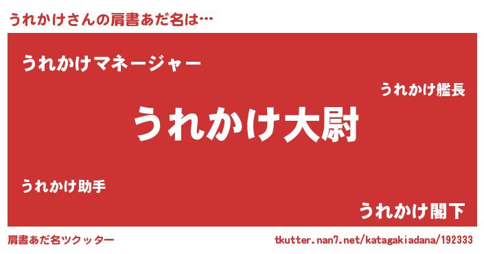 | 男性向けラノベタイトル風あだ名 | 『ウレカケスレイヤー』『緋弾のウレカケ』 |