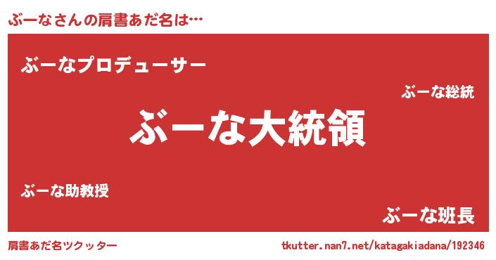 | ポケモン風あだ名 | 『ブーナダネ』『ブーゴンZ』 |