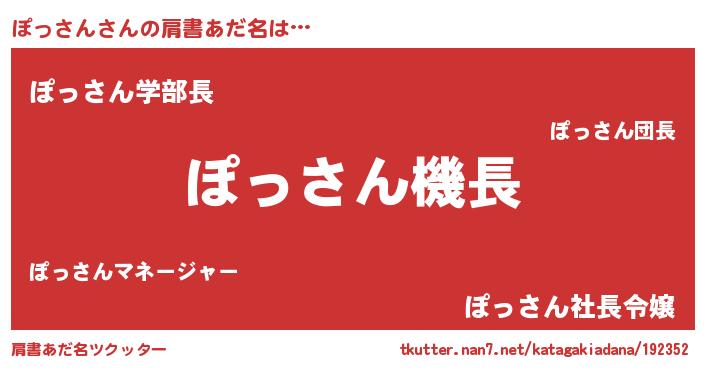 | ヒーロー風カッコイイあだ名 | 『正義の使者ぽっさん』『炎刃騎士ポッ』 |