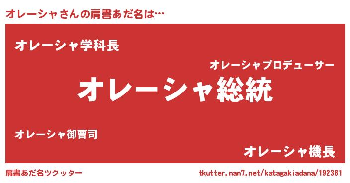 | 意味不明あだ名 | 『自称オレーシャ』『ペロリンオレーシャ』 |