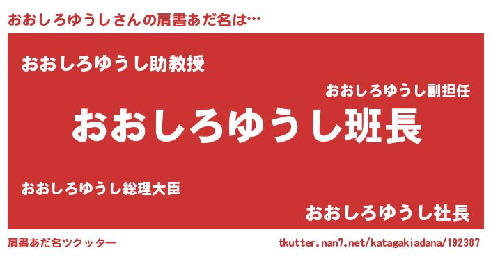 | 欧米人風あだ名 | 『ウサインおおしろゆうし』 |