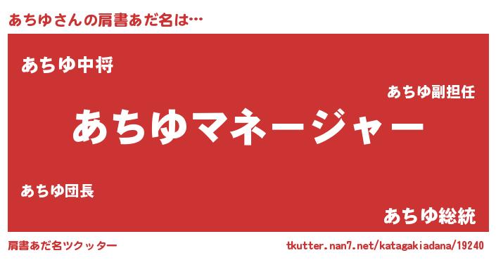 | ヘコむあだ名 | 『あちゆ(小並感)』『あちっちょ』 |