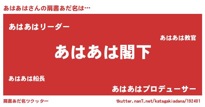 | 男性向けラノベタイトル風あだ名 | 『Re:あはあはから始める異世界生活』 |