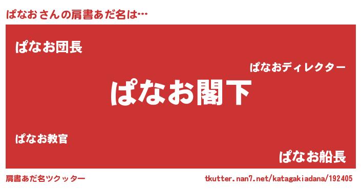 | 男性向けラノベタイトル風あだ名 | 『魔法科高校のぱなお』『緋弾のパナオ』 |