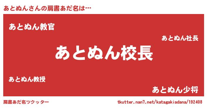 | ヘコむあだ名 | 『あとぬん(爆)』『あとにゅー』 |