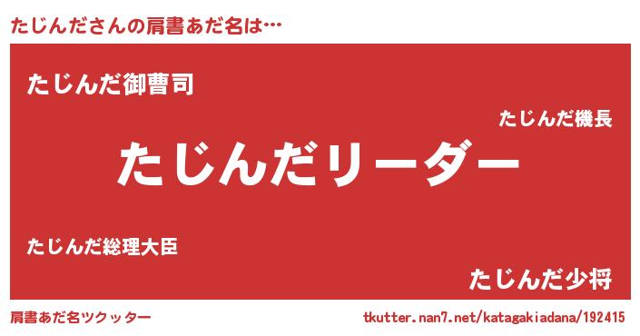 | ポケモン風あだ名 | 『ヒタジンダ』『タジチュウ』 |