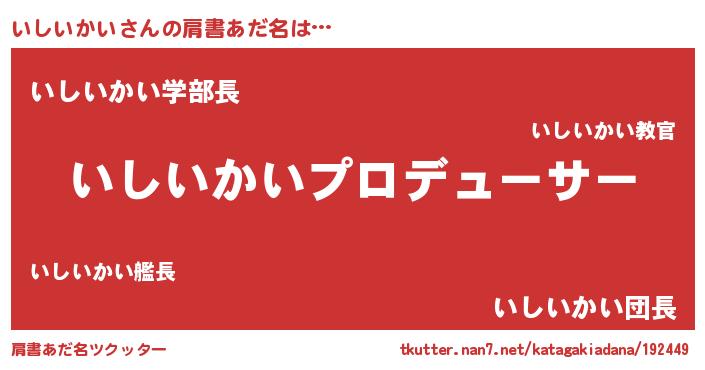 | 男性向けラノベタイトル風あだ名 | 『いしいかいに滅ぼされるだけの簡単なお仕事です』 |