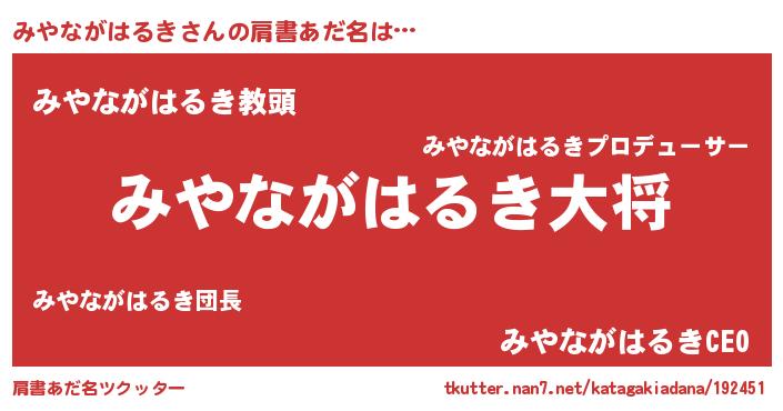 | ヘコむあだ名 | 『みやながはるき(震え声)』『みやふぇ~』 |