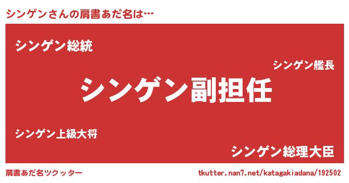 | 男性向けラノベタイトル風あだ名 | 『誰もが恐れるあのシンゲンが、ぼくの専属メイドになるようです。』 |