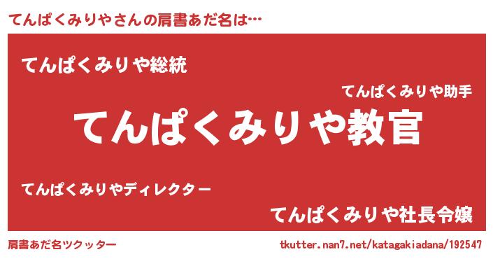 | 意味不明あだ名 | 『住所不定無職てんぱくみりや(95歳)』 |