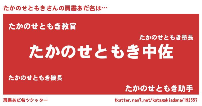 | 男性向けラノベタイトル風あだ名 | 『転生したらたかのせともきだった件』 |