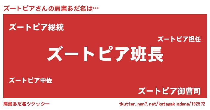 | ヒーロー風カッコイイあだ名 | 『魔戒騎士ズー』『スーパーズートピア』 |