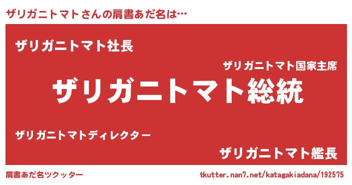 | 男性向けラノベタイトル風あだ名 | 『Re:ザリガニトマトから始める異世界生活』 |