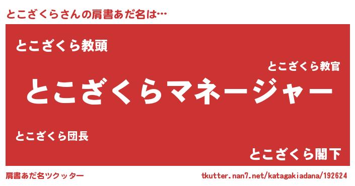 | ヒーロー風カッコイイあだ名 | 『ネオトコザクラ』『最強戦士トコザクラ』 |