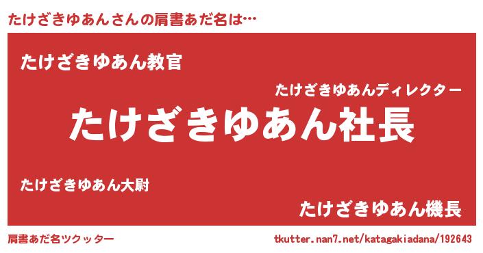| 恥ずかしいあだ名 | 『プリティーたけざきゆあん』『たけちん』 |