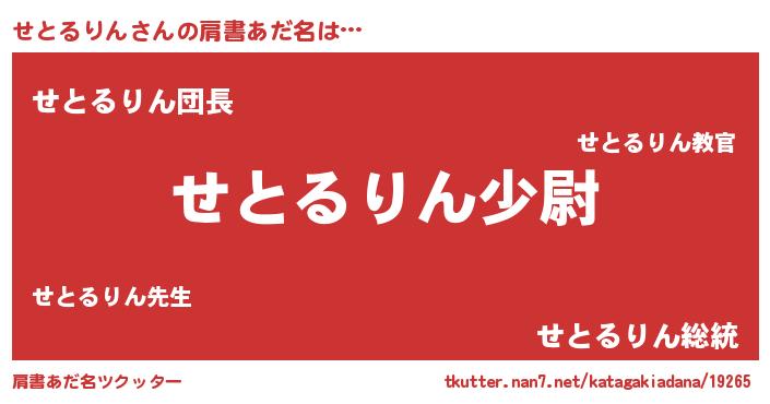 | 男性向けラノベタイトル風あだ名 | 『転生したらせとるりんだった件』 |