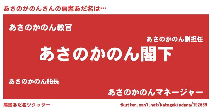 | 意味不明あだ名 | 『自称あさのかのん』 |