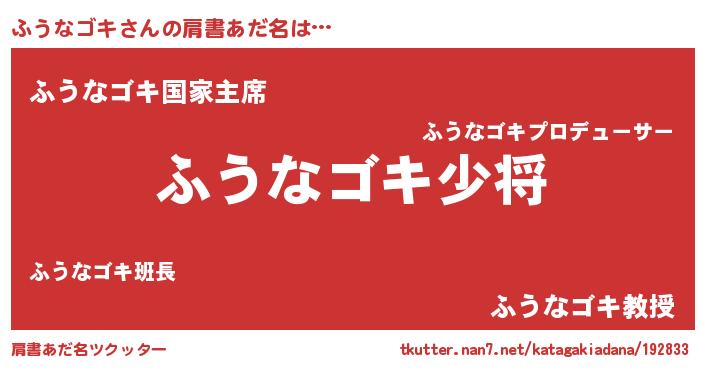| 男性向けラノベタイトル風あだ名 | 『ふうなゴキ~年齢イコール彼女いない歴の魔法使い~』 |