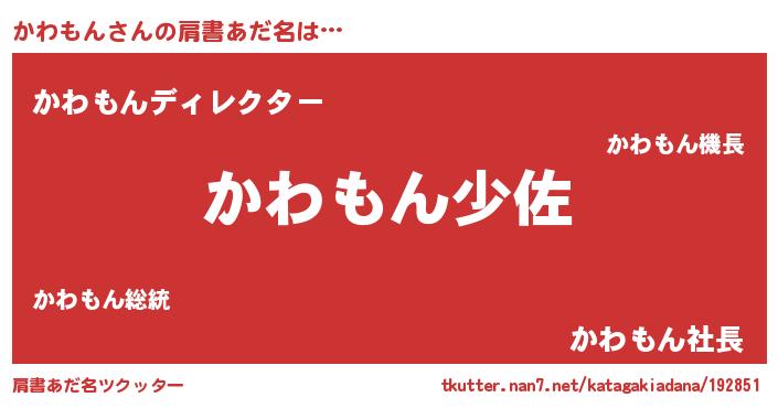| ヒーロー風カッコイイあだ名 | 『スーパーカワモン』『究極戦士カワモン』 |