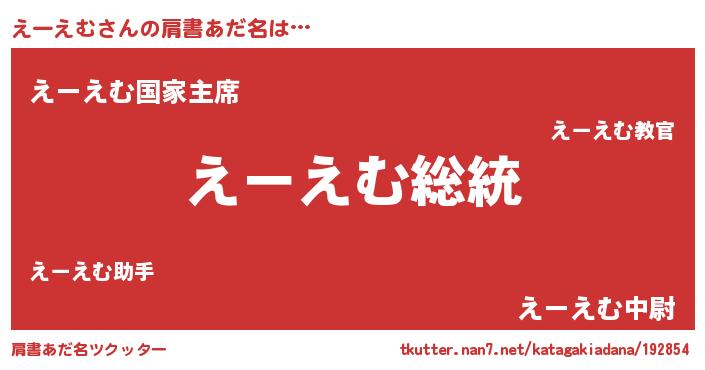 | 意味不明あだ名 | 『自称えーえむ』『えーえむフォーエバー』 |