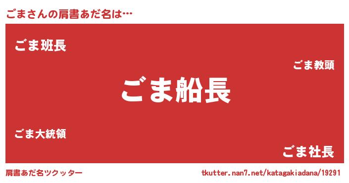 | 男性向けラノベタイトル風あだ名 | 『うちのごまが世界を掌握している!』 |