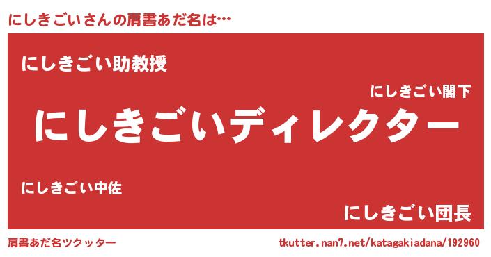 | ポケモン風あだ名 | 『ニシゴンZ』『ニックウザ』 |