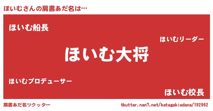 | ヘコむあだ名 | 『ほいむ(遠い目)』『ほいお』 |